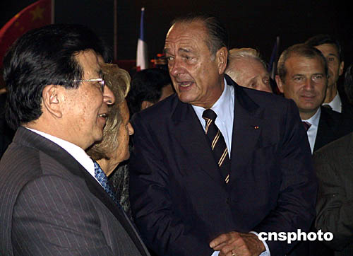 希拉克總統(tǒng)說,首先感謝貴國對我的熱烈歡迎,我是第一次來四川,有這個機會我很高興,成都的經(jīng)濟發(fā)展很快,對我印象很深。