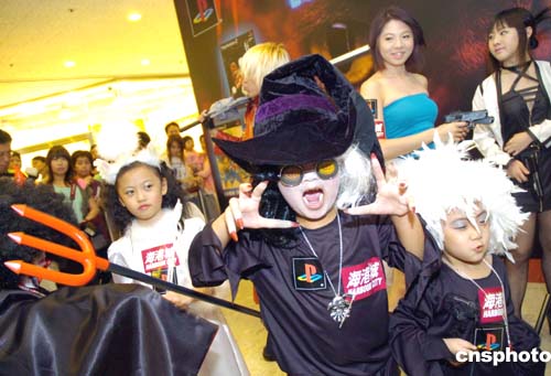 西方“萬圣節(jié)”即將到來,香港海港城聯(lián)同PlayStation 2將商場裝飾成猛鬼基地,提供多項刺激驚嚇游戲,讓市民投入熱鬧的西洋佳節(jié)。