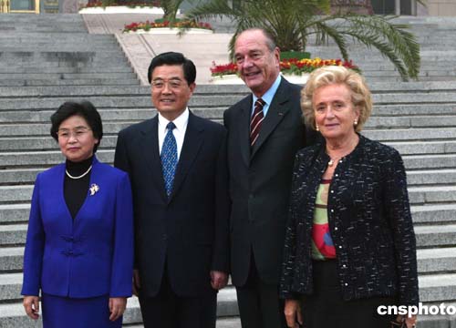 胡錦濤和夫人歡迎希拉克夫婦訪華。中新社記者:滿會喬