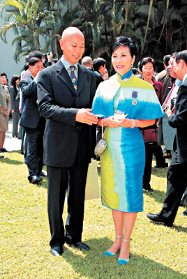 獲頒星章后,“阿姐”在家英陪同下,步進(jìn)禮賓府的草地參與酒會(huì),期間家英充當(dāng)攝影師,不停為“阿姐”與其它嘉賓拍照留念。雖然記者起哄要他親“阿姐”以示道賀,但卻食了“阿姐”的檸檬。