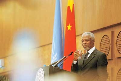 2001年10月,安南獲當(dāng)年諾貝爾和平獎。安南曾于1997年5月、1998年3月、1999年11月、2001年1月訪華,這次是他第5次訪華。(鄭超)