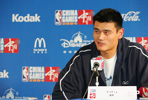 “國王”和“火箭”兩支籃球隊(duì)先后于十月十二日凌晨抵達(dá)上海,備戰(zhàn)十四日舉行的NBA中國賽。當(dāng)日中午,姚明出席在上海體育館舉行的新聞發(fā)布會(huì)。作者:湯彥俊