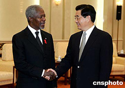 組圖:胡錦濤會(huì)見聯(lián)合國(guó)秘書長(zhǎng)安南