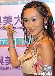香港藝人吳文忻12日出席在香格里拉酒店舉行的2004屈臣氏健與美大賞慈善頒獎晚宴。作者:趙振清