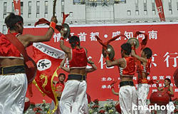十月十五日,中原地區(qū)的“威風(fēng)鑼鼓”在北京西單文化廣場敲響,拉開“情系北京.感知河南--中原文化北京行”活動的序幕。中新社記者:史利