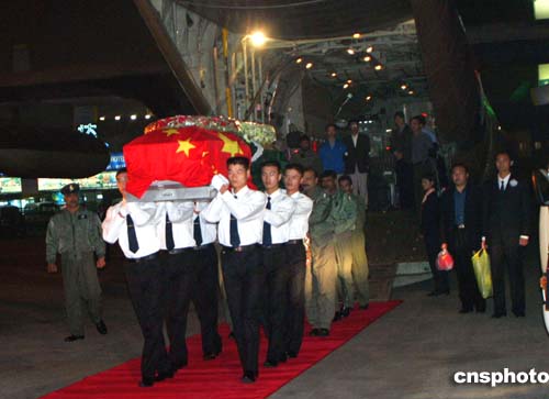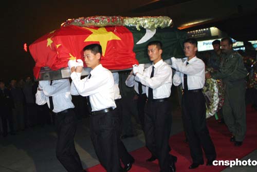 | 在巴基斯坦人質(zhì)綁架事件中遇難的中國工程師王鵬的遺體,十月十六日晚八點四十五分由巴基斯坦運抵山東濟南國際機場。中國外交部、商務(wù)部、山東省政府等有關(guān)部門的官員在濟南機場舉行莊嚴(yán)的靈柩迎接儀式。巴基斯坦內(nèi)政部和國務(wù)部的官員專程護(hù)送靈柩同機抵達(dá)。作者:王鋒