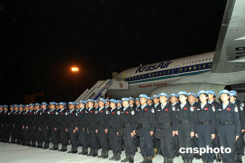 九十五名中國維和警察防暴隊(duì)成員十七日乘聯(lián)合國專機(jī)從北京首都國際機(jī)場出發(fā),前往海地執(zhí)行聯(lián)合國維和任務(wù)。這是中國政府第一次向海地任務(wù)區(qū)派遣維和警察防暴隊(duì)。這支防暴隊(duì)隊(duì)員平均年齡二十八歲,其中有十三名女警,來自北京、天津等四個(gè)直轄市的公安防暴總隊(duì)和公安邊防部隊(duì)。防暴隊(duì)員從今年六月以來,經(jīng)過了四個(gè)多月的業(yè)務(wù)訓(xùn)練和外語培訓(xùn)。