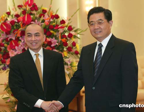 胡錦濤會(huì)見柬埔寨新國(guó)王西哈莫尼 暢談兩國(guó)友誼