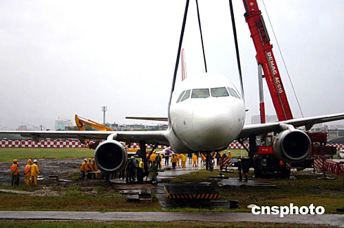 此間電視臺報(bào)道,這架載有九十人的A-320飛機(jī)原計(jì)劃晚八點(diǎn)在松山機(jī)場降落,由于天雨跑道濕滑,加上側(cè)風(fēng),出現(xiàn)失控,險(xiǎn)些撞到機(jī)場圍墻。駕駛員緊急左轉(zhuǎn),因而飛機(jī)沖出跑道。從電視畫面上看,飛機(jī)前輪似有損壞,機(jī)頭微朝下。