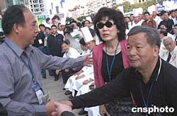 臺灣中華美食交流協(xié)會訪問團團長徐旺火(圖右一)一行十一人,二十日出席在福州舉辦的第十四屆中國廚師節(jié)暨海峽兩岸美食節(jié)開幕式,受到祖國大陸烹飪界人士熱烈歡迎。作者:劉可耕