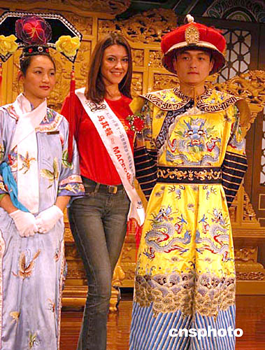 第十一屆世界旅游小姐年度皇后世界總決選將于二十九日在長沙舉行。二十日,已抵達(dá)長沙的二十余位世界各國佳麗參加了湖南首屆西湖樓美食節(jié)。美食節(jié)上,身著清朝宮廷服飾的迎賓表演吸引了世界旅游小姐。作者:劉雙雙