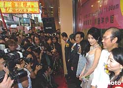 香港歌影紅星陳慧琳23日擔(dān)任剪彩嘉賓出席香港金至尊珠寶北角分店開幕典禮。作者:趙振清