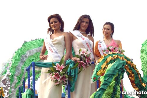 | 二十三日上午,在風(fēng)光旖旎的湘江岸邊,來(lái)自三十一個(gè)國(guó)家和地區(qū)世界年度旅游皇后舉行國(guó)際花車(chē)巡游活動(dòng)。這是將參加二十九日舉行的第十一屆世界旅游小姐年度皇后大賽世界總決賽的三十一位佳麗,第一次在長(zhǎng)沙全體亮相。作者:劉雙雙