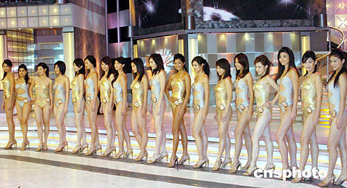 2004亞洲小姐競(jìng)選總決賽十月二十四日晚在香港演藝學(xué)院舉行,來(lái)自各國(guó)的十八位參賽佳麗爭(zhēng)奪是次大賽桂冠。圖為參賽佳麗身穿泳裝展示風(fēng)采。中新社記者:錢興強(qiáng)