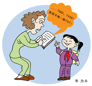 家住天津市和平區(qū)的許女士無意間發(fā)現(xiàn)女兒的日記中有這樣的文字:“……沒想到我最要好的朋友竟欺騙我,TMD(他媽的),7456(氣死我了),我恨不得一腳TST(踢死她)!痹S女士看后不知所云,直到女兒一番解釋她才明白過來。許女士無奈地對(duì)記者說:“這是什么話呀,日記本成了密碼本,根本看不明白!看來我和孩子之間已經(jīng)有了‘網(wǎng)絡(luò)溝’!