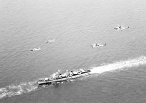驅(qū)逐艦部隊(duì)的戰(zhàn)斗力在提升,驅(qū)逐艦官兵走向深藍(lán)的決心和信心不斷增強(qiáng)。2002年5月15日,中華民族歷史上劃時(shí)代的一頁(yè)。由國(guó)產(chǎn)第二代驅(qū)逐艦“青島”艦擔(dān)任旗艦的海軍艦艇編隊(duì),舉行了舉世矚目的環(huán)球航行,先后對(duì)新加坡、埃及、土耳其、烏克蘭、希臘、葡萄牙、巴西、厄瓜多爾、秘魯、法屬帕皮提港等10個(gè)國(guó)家的10個(gè)港口進(jìn)行了友好訪問(wèn)。艦艇橫跨三大洋、途經(jīng)五大洲、6次穿越赤道,總計(jì)航程33126海里,歷時(shí)132天,在外軍和外國(guó)公眾及華人華僑面前,充分展示了我軍威武之師、文明之師、和平之師的良好形象。圓了中華民族的千年環(huán)球夢(mèng)想,也實(shí)現(xiàn)了第一支驅(qū)逐艦部隊(duì)官兵走向深藍(lán)的夙愿。