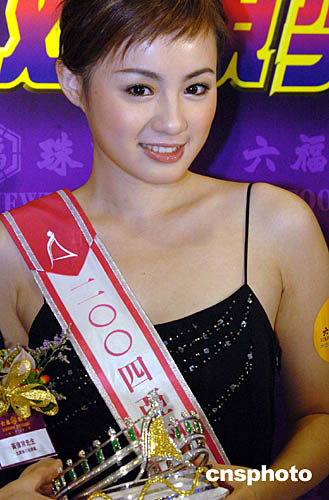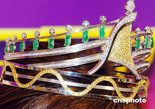 香港珠寶商向亞姐競選獲得冠軍的呂晶晶授予價值一百二十五萬元(港幣)金鉆翡翠后冠。