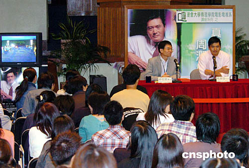 平素學(xué)術(shù)氣氛濃厚的香港浸會(huì)大學(xué)校園,今日卻滲透出一種“星味”來(lái)。原來(lái),周潤(rùn)發(fā)出現(xiàn)校園,與大學(xué)生真情對(duì)話。難得一睹巨星風(fēng)采,一眾接受高等教育的大學(xué)生也瘋狂起來(lái),原本嚴(yán)肅論電影的座談會(huì),變成了周潤(rùn)發(fā)影迷聚會(huì)。