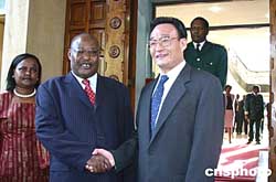 當(dāng)?shù)貢r(shí)間十月三十日下午,在肯尼亞進(jìn)行國(guó)事訪問的中國(guó)全國(guó)人大常委會(huì)委員長(zhǎng)吳邦國(guó)與肯尼亞議長(zhǎng)卡帕羅在肯尼亞議會(huì)舉行正式會(huì)談。作者:張量