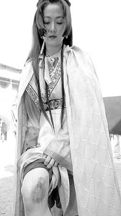 記者來到劇組探班時,正趕上拍攝一場穆桂英在馬上戰(zhàn)群雄的戲,只見王思懿手持長槍躍躍欲試,剛要放馬撒開韁繩舉槍,馬突然驚了,一個加速,把王思懿從馬背上甩下來。劇組工作人員見此狀全都嚇呆了,因?yàn)橥跛架彩窍ドw先著地跌下來,已經(jīng)疼得暈過去。待將王思懿攙扶起來時,她的腿部已根本不聽使喚,沒法走路,在導(dǎo)演、醫(yī)生等簡單處理后,記者才得知,原來思懿左腿膝部完全脫臼,轉(zhuǎn)了180度之后才扳回來。