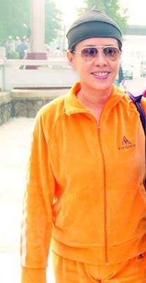2004年11月3日,發(fā)嫂為老公來(lái)廣州打官司,一身寬松的運(yùn)動(dòng)裝,已遮掩不住明顯隆起、據(jù)說(shuō)是練氣功而出現(xiàn)的肚子。(記者葉毅)