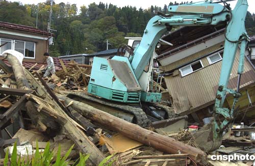 圖為震中災(zāi)區(qū)川口鎮(zhèn)內(nèi)正加緊清理地震倒塌房屋廢墟。作者:王健