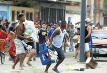 遭哄搶的4家華人商店均位于華戀社市的貧民聚居區(qū)。一位鄰居目擊者稱:在加拉沃沃省華戀社市中心的一家華人經(jīng)營的超市門前,當時聚集了一群執(zhí)政黨省長候選人阿科斯塔·卡萊斯的狂熱支持者,當聽到卡萊斯以50.42%的優(yōu)勢暫時領先時,人們發(fā)出了陣陣的歡呼,情緒十分高漲。