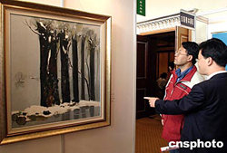 在十一月七日舉行的嘉德二零零四秋季拍賣會(huì)上,著名畫(huà)家吳冠中創(chuàng)作于二十世紀(jì)七十年代的油畫(huà)作品《北京雪》以三百六十三萬(wàn)元人民幣的高價(jià)成交,成為此次嘉德中國(guó)油畫(huà)專場(chǎng)拍賣會(huì)的最高成交價(jià)作品。吳冠中的作品具有很高的藝術(shù)欣賞和收藏價(jià)值,并多次創(chuàng)造拍賣紀(jì)錄。圖為《北京雪》在預(yù)展時(shí)備受矚目。中新社記者:張煒