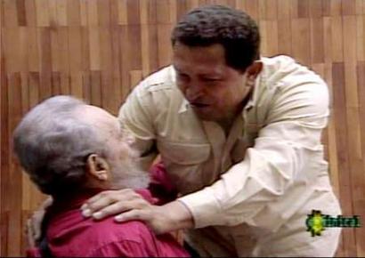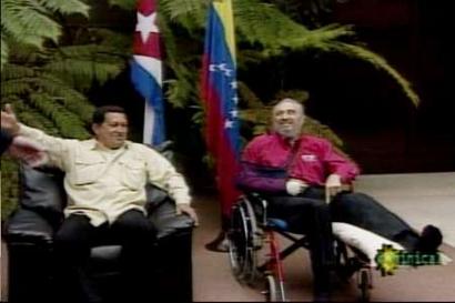 報道稱,卡斯特羅與查韋斯在上星期六晚上舉行了長達八個小時的會談——這對于一個已經(jīng)78歲高齡的老人來說非常不易,考慮到他還剛剛摔了一跤,就更有點難能可貴了。電視臺的畫面顯示,卡斯特羅坐在輪椅上,腿打了石膏,胳膊也用吊帶吊在脖子上。此前,卡斯特羅在不慎摔倒后只在電視上出現(xiàn)過一次。當時電視臺只播出他胸部以上部分的鏡頭。