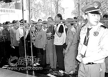 被拒進(jìn)場(chǎng)后,大部分觀眾雖然十分失望,但仍在廣場(chǎng)附近徘徊,久久不愿離去。一些年輕氣盛的觀眾則對(duì)此表示強(qiáng)烈憤慨。一名中年男子高聲質(zhì)問(wèn)保安員:“我們都是看了報(bào)紙?zhí)匾廒s過(guò)來(lái)的,你們?cè)谛麄鲿r(shí)只說(shuō)是到8日結(jié)束,沒說(shuō)明到中午就閉館,這不是折騰人嘛,白白浪費(fèi)了我們的時(shí)間和心機(jī),你們要給精神賠償!”