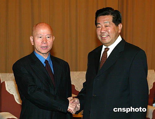 中新社北京十一月九日電(記者劉舒凌)中共中央政治局常委、全國政協(xié)主席賈慶林九日在此間全國政協(xié)禮堂會見由臺灣知名人士許信良率領(lǐng)的臺灣“兩岸農(nóng)業(yè)交流訪問團(tuán)”。