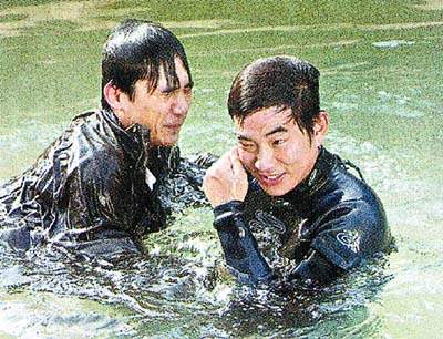 開(kāi)機(jī)儀式之后,導(dǎo)演馬楚成隨即拍攝當(dāng)日戲份。任賢齊與梁朝偉來(lái)到溫泉區(qū),拍攝一場(chǎng)水中搏斗的戲份。