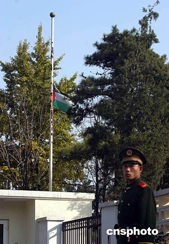 圖:巴勒斯坦駐華使館降半旗向阿拉法特致哀