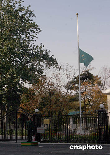 圖:毛里塔尼亞駐華使館降半旗向阿拉法特致哀