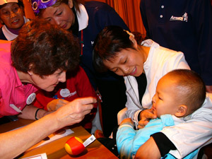 中新網(wǎng)11月12日電(記者潘旭臨)二百名來自湖北各地上唇腭裂兒童今天聚集在省婦幼保健醫(yī)院,接受安利國際微笑行動醫(yī)療志愿者組織的免費矯形手術(shù)。