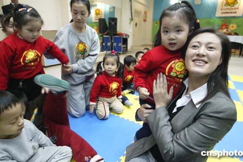 十一月十六日,北京京城特衛(wèi)安全顧問有限公司的職員朱麗萍在北京的一家幼兒園與小朋友歡娛。從本月三十日起,她將成為該幼兒園的“女保鏢”并成為京城幼兒園的首位“女保鏢”。現(xiàn)年二十六歲的朱麗萍曾是特警,復(fù)員轉(zhuǎn)業(yè)后在北京京城特衛(wèi)安全顧問有限公司供職。作者:任海霞
