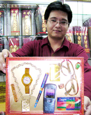 現(xiàn)在,這些燒給先人使用的禮儀用品也和時(shí)代相結(jié)合。以往多以紙黃金、白銀、房屋別墅、項(xiàng)鏈、戒指等高價(jià)值的物品為主;近年來,在家屬要求下,汽車、名牌香煙、打火機(jī)、麻將、棋類、電視等家電用品也不少。有往生者生前喜歡出入賭場,家屬特別訂購一間仿美國拉斯維加斯賭場的模型;還有往生者生前喜歡玩賭博電玩,家屬訂購一臺賭博機(jī),讓死者在陰間也能稍解賭癮。