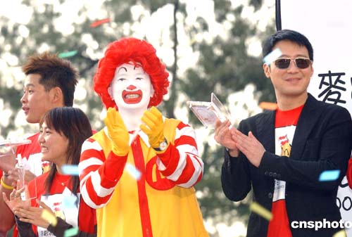 香港影視紅星、愛心大使黎明,11月20日在香港維園出席“麥當勞世界兒童日2004”活動,此次活動為世界各地貧困地區(qū)兒童改善生活籌款。作者:洪少葵