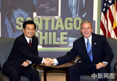 會見結(jié)束后,兩國元首共同會見了記者。胡主席表示,剛才同布什總統(tǒng)進(jìn)行了內(nèi)容豐富的會談。雙方還就臺灣問題交換了看法。我對布什總統(tǒng)表示繼續(xù)堅持一個中國政策、恪守三個聯(lián)合公報、反對“臺獨(dú)”的立場表示贊賞。