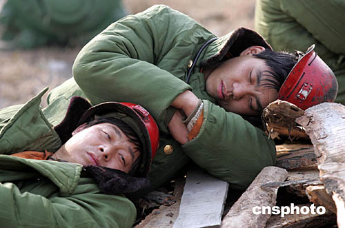 下午五點左右,在副礦口外,一群人正緊急待命,準(zhǔn)備下井搜救被困人員。他們有的是這個礦區(qū)的工人,有的是裝備齊全的救護小隊。那些工人手持幫助呼吸的自救器,下去是要搜救位于礦區(qū)淺層的被困人員,這些地段相對安全,而救護小隊的隊員目標(biāo)是礦區(qū)深層中的被困人員。記者目送著他們慢慢消失在了迷茫的空氣中,問旁邊人他們什么時候可以上來,沒有得到準(zhǔn)確答案。