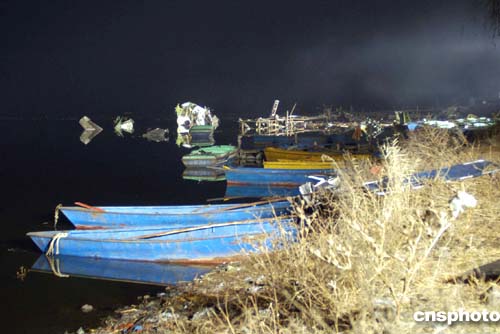 當(dāng)本社記者今晚趕到南湖公園時(shí)看到,空難現(xiàn)場(chǎng)安裝了探照燈,潛水隊(duì)員已撤離,今晚打撈黑匣子作業(yè)暫停。大塊的飛機(jī)殘骸仍在船上,湖面結(jié)了一層薄冰。事故之后的南湖一片靜寂。