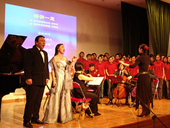 藝術(shù)專業(yè)留學(xué)生們獻(xiàn)上了主題為“人間自有真情在”的精彩文藝節(jié)目。晚會分為“追思”、“歸來”和“展望”三個單元。大合唱《深情一望》,寄托了對逝者的無限哀思,引人垂淚。音樂劇《歸來》和一曲“說句心里話,使館就是咱的家……”贊揚了使館工作人員忘我救助傷員的動人事跡。女生獨唱《親吻祖國》飽含對祖國的深情厚愛和對美好未來的無限憧憬,將整個晚會推向高潮。