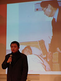 大會前后,全體與會者還為罹難同胞肅立默哀,使館領(lǐng)導(dǎo)同留學(xué)生合影并親切交談,詢問了他們的學(xué)習(xí)生活情況。