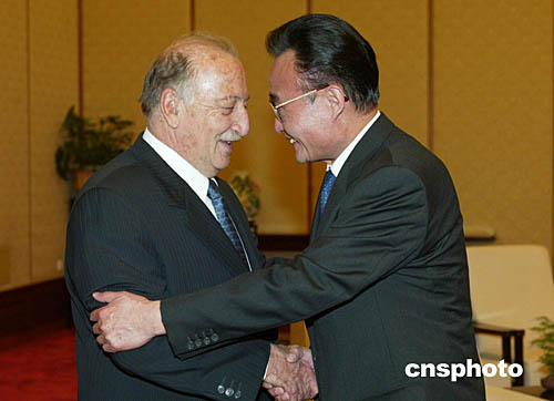 全國(guó)人大常委會(huì)委員長(zhǎng)吳邦國(guó)十一月二十三日在北京會(huì)見(jiàn)約旦參議長(zhǎng)里法伊。中新社記者:滿(mǎn)會(huì)喬