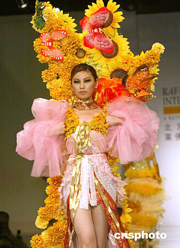 十一月二十四,北京服裝學(xué)院畢業(yè)生時(shí)裝作品分布會(huì)在北京中國(guó)大飯店舉行,一款花枝招展,彩蝶飄飄的時(shí)裝作品演繹燦爛春天。中新社記者:史利