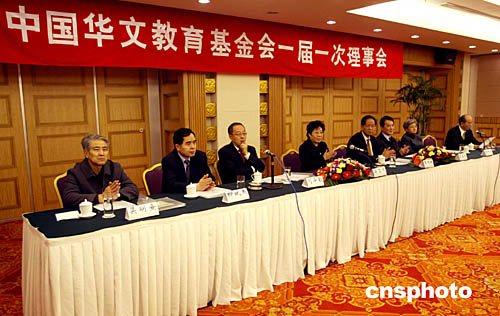 中國華文教育基金會(huì)一屆一次理事會(huì)十一月二十五日在北京世紀(jì)飯店舉行,二十三位理事和監(jiān)事出席會(huì)議。會(huì)議審議并通過了中國華文教育基金會(huì)章程(草案),確立了基金會(huì)首批募捐和資助項(xiàng)目并選舉了理事長、秘書長。中新社記者:史利