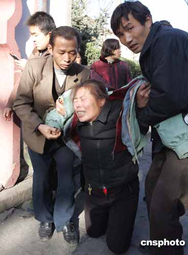 11月29日中午,發(fā)生重大瓦斯爆炸事故的陜西省銅川陳家山煤礦外,眾多下落不明的礦工家屬在焦急等待消息,一名礦工妻子悲痛欲絕。作者:任晨鳴