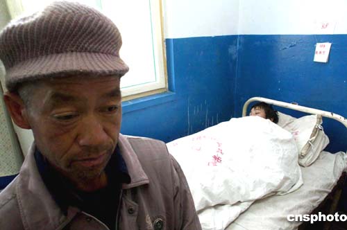 11月29日上午,在陜西銅川礦務(wù)局陳家山煤礦瓦斯爆炸中幸免遇難的礦工在礦務(wù)局醫(yī)院接受治療。作者:張俊杰