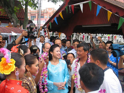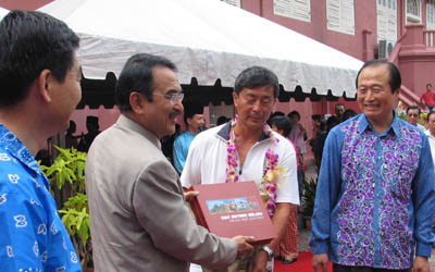 慶祝儀式舉行的地點荷蘭紅屋也頗為傳奇。它座落于馬六甲河畔,建于1641至1660年間,是東南亞最古老的荷蘭建筑物,有著厚厚的紅磚墻,笨重的硬木門,和門前寬闊的石級。特色不變,卻幾經(jīng)變遷。荷蘭紅屋原為教堂,后來改為市政府,現(xiàn)在成了馬六甲博物館,藏有馬來、葡萄牙、荷蘭和英國的歷史文物。穿越近400年的歲月,荷蘭紅屋也是馬來發(fā)展變化的見證者。儀式就是在這樣歷史感頗強的場景氛圍中開始的。