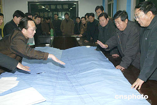 11月29日深夜至30日凌晨,國家安全生產(chǎn)監(jiān)督管理局局長王顯政(右二)在銅川陳家山礦難搶險指揮中心,聽取搶救下落不明井下礦工的進展情況。作者:張俊杰